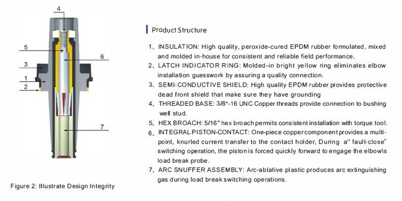 Издржљива конструкција: Направљена са висококвалитетном ЕПДМ изолацијом и уграђеним полупроводљивим штитом, који нуди врхунску електричну изолацију и контролу напрезања. Контакти од калајисаног бакра повећавају проводљивост, боре се против корозије и дуже трају—помажући вам да уштедите на дуготрајним заменама.