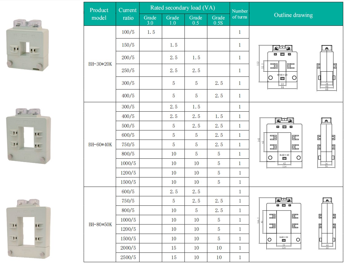 Цомевилл фабрички висококвалитетни струјни трансформатор БХ-К серије погодан је за набавку у АЦ круговима са називном фреквенцијом од 50 Хз и називним радним напоном од 0,66 кВ и ниже, овај производ се истиче прецизним мерењем струје и електричне енергије, у потпуности испуњавајући техничке захтеве пројеката набавке.