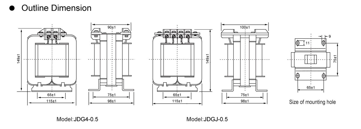 ЈДГ4-0.5 Индоор нисконапонски трансформатор Димензије инсталације